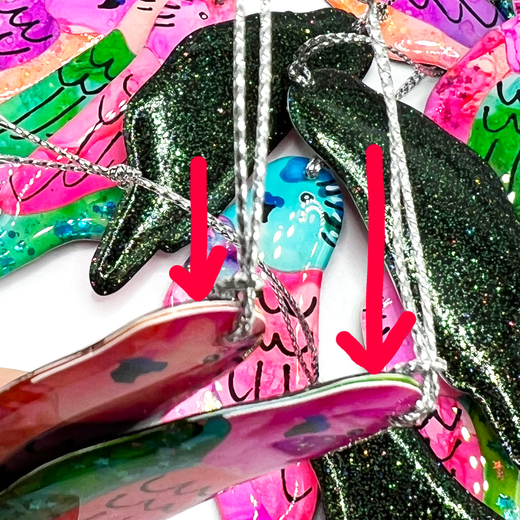 The glue and resin reacted in our cold Melbourne weather and caused the top of the head to slightly come apart by about 1mm (see last photo). Not suitable for earrings but perfect for little decorations, maybe Christmas Tree or hang from a plant or gift - anything you like really!