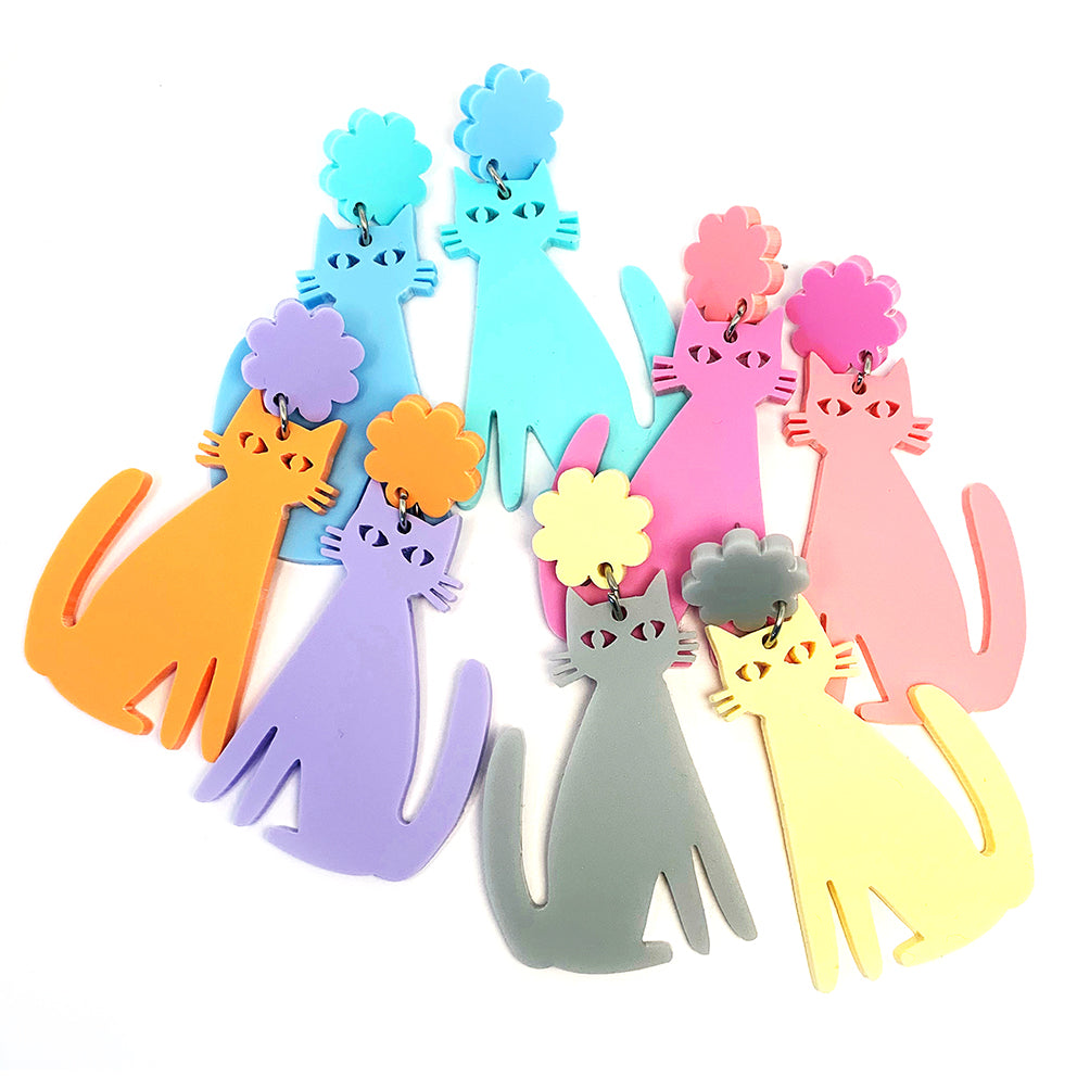 Spooky Cats! Laser cut from premium pastel acrylic with a matte finish and assembled by hand. Lightweight and fun to wear.