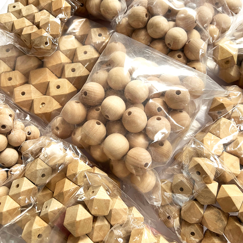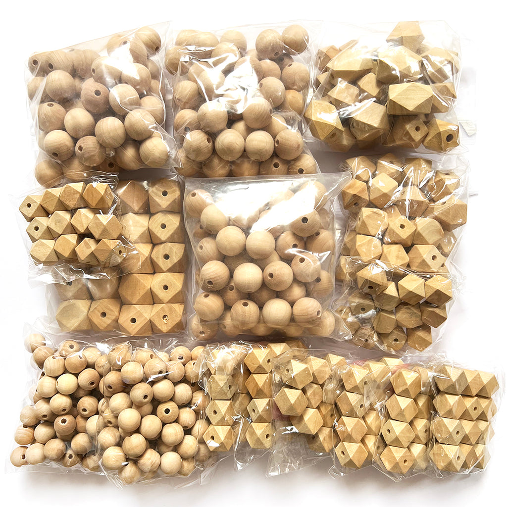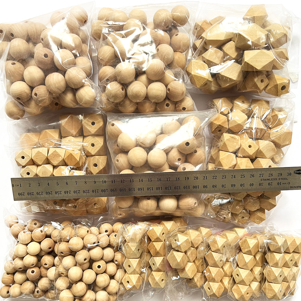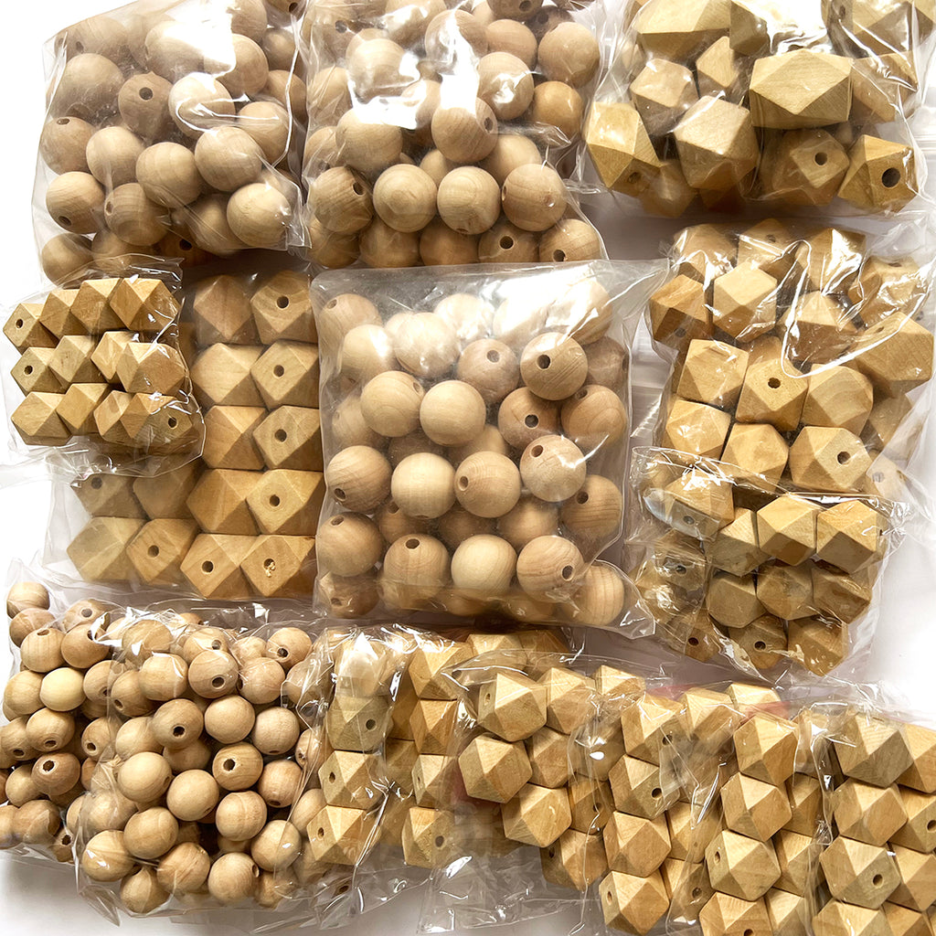 Wood Beads · Mix sizes & shapes · Maple · 15-30mm · Approx 450 Beads