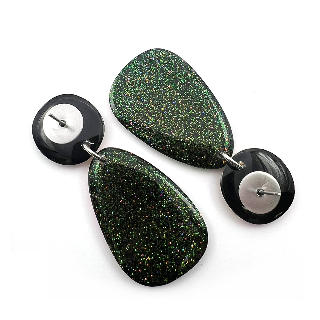 Painted by hand with ink on yupo paper, finished with glossy domed resin on both sides. Lightweight to wear. Each handcrafted pair is one of a kind.