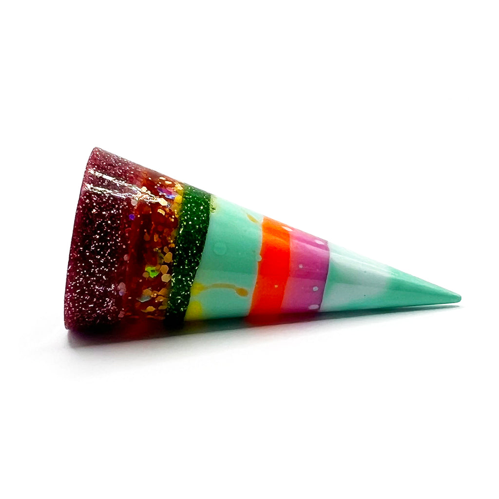 Beautiful resin ring cone, hand poured from layers of different coloured resin.