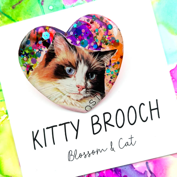 The cutest, cosmic handmade Kitty Brooch! Painted with ink on yupo paper, decorated with a cute kitty that has been rescued from a vintage postage stamp, finished with glitter and a glossy resin on both sides. Each handcrafted brooch is one of a kind. A perfect mini artwork for you to wear everyday.
