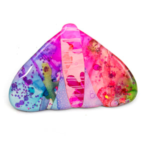A mixed media piece created from an original artwork, embellished with hand painted details and finished with a glossy resin on both sides. Each handcrafted Moth is one of a kind. A perfect mini artwork for you to wear everyday.